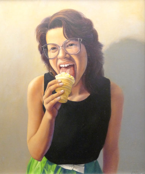 Nadja mit Eis, 55x45 cm,Öl auf Leinwand, 1990