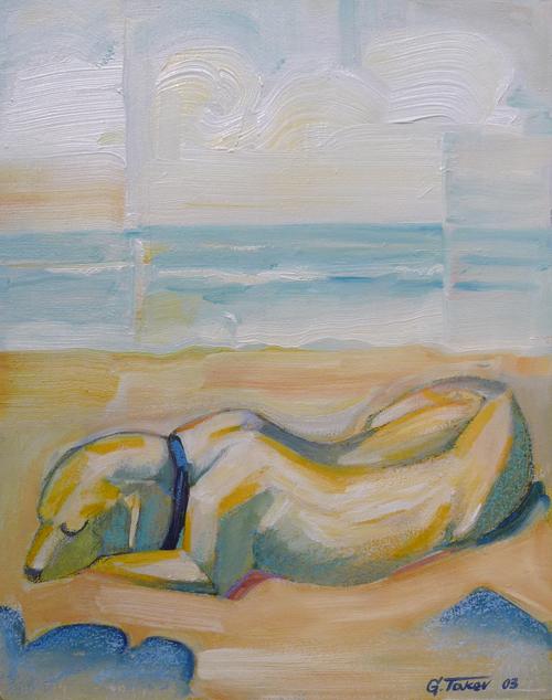 Schlafender Hund am Strand, Paraphrase nach Franz Marc,